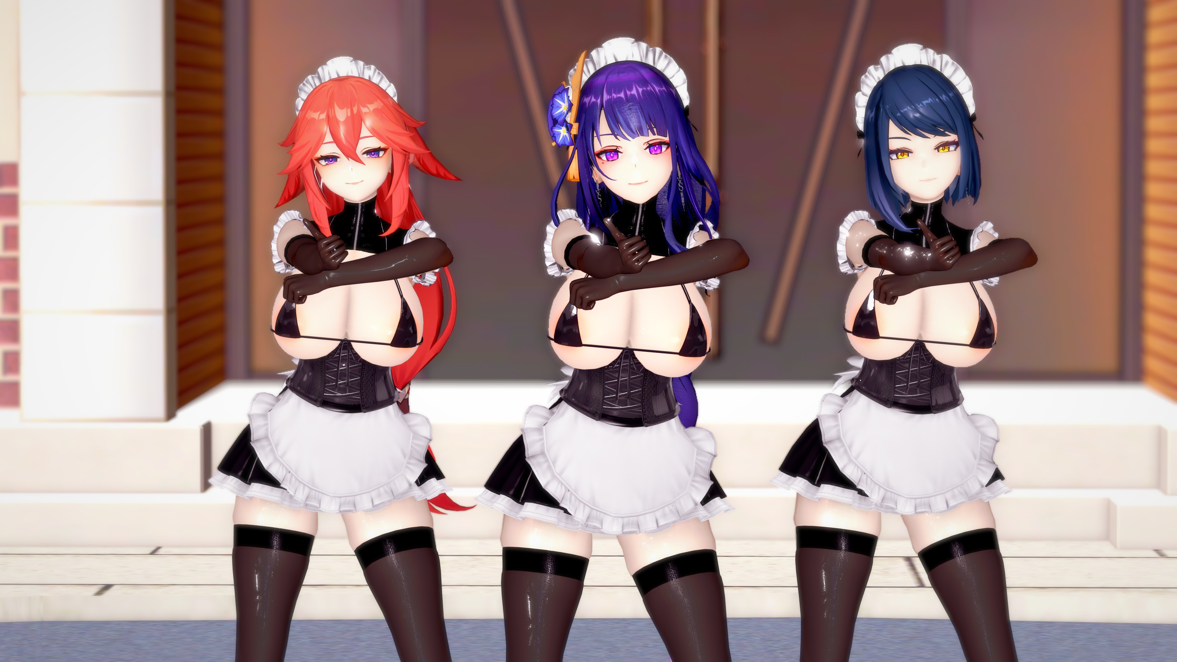雷電將軍x八重神子x九條裟羅 – Thumbs Up 【Genshin Impact】女僕裝